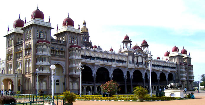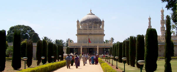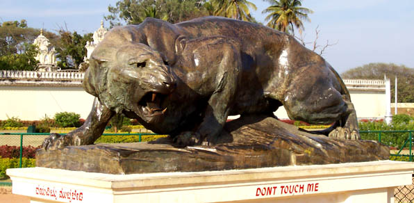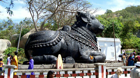 MysoreOn Sunday I had arranged for my driver to take me to Mysore, the ancestral capital of the state (Bangalore is the current capital). Not quite sure what to expect, I picked up a map and guidebook the day before, but I need not have worried - Chandru knew the area well and gave me a wonderful tour.Our first stops were at the Sultan Tipu's Palace and Burial Ground, and then we drove up Chamundi Hill, where a temple to the goddess Kali sits atop the hill, with commanding views in all directions. On the way down, we stopped at the Bull Temple, site of an ancient huge bull, carved from a single piece of black stone.