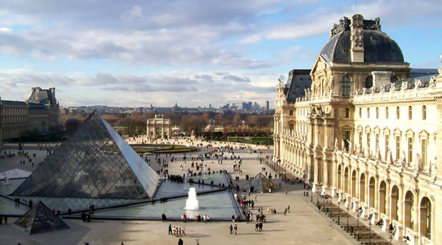 Old and new: The courtyard of the Louvre, with the entrance pyramid.